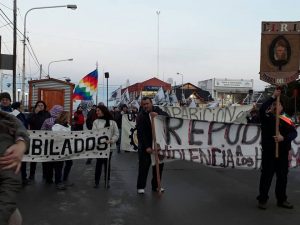 El orador principal del acto fue Miguel Pantoja, descendiente del Pueblo Selknam, quien visiblemente emocionado lamentó la situación que hoy está atravesando el pueblo mapuche y los pueblos originarios en general que son desalojados de sus tierras a fuerza de represión y pidió el acompañamiento para su pueblo y para todos los originarios porque “si esto sucede en plena democracia estamos muy mal”.