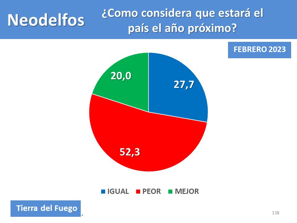 En lo que refiere a la Provincia, un 36,6% cree que el 2024 será un mejor año para Tierra del Fuego, mientras que el 20,05% opina a lo contrario, siendo el término medio la opción de más del 42% de los encuestados.