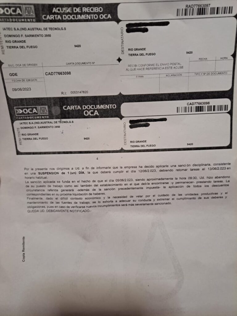 En horas de la mañana cientos de trabajadores fueron notificados y los efectivos denuncian que es a raíz de lo ocurrido el pasado lunes 5 de junio cuando el gremio de gastronómicos realizó una medida de fuerza.