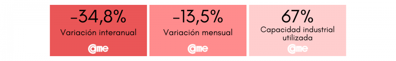 Estos resultados surgen del Índice de Producción Industrial Pyme (IPIP) que elabora CAME, con una muestra que alcanzó a 413 industrias pyme a nivel federal.