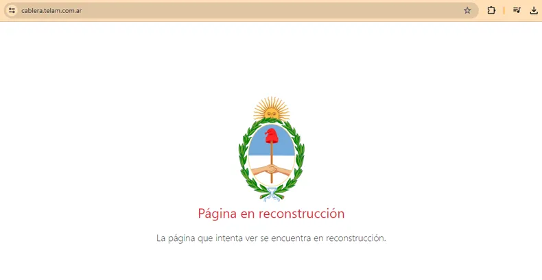 La agencia de noticias Télam y todo su contenido quedaron inaccesibles. Lo único que aparece cuando se intenta acceder a las páginas telam.com.ar y cablera.telam.com.ar es la imagen del escudo de la República Argentina y la leyenda «Página en reconstrucción. La página que intenta ver se encuentra en reconstrucción».