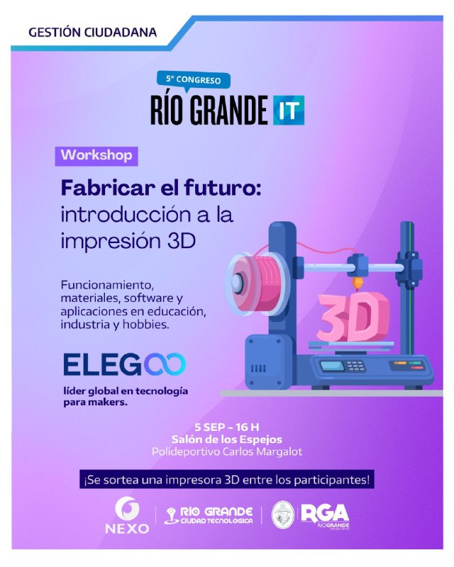 Luego, a las 16 horas, se realizará el workshop “Fabricar el futuro: introducción a la impresión 3D”, dictado por Nexo. Durante la actividad, los participantes conocerán el funcionamiento de impresoras 3D de resina y filamento, los distintos tipos de materiales, softwares de modelado y diseño, y aplicaciones prácticas en educación, industria y hobbies tecnológicos. Al finalizar, se sorteará entre los presentes una impresora 3D.