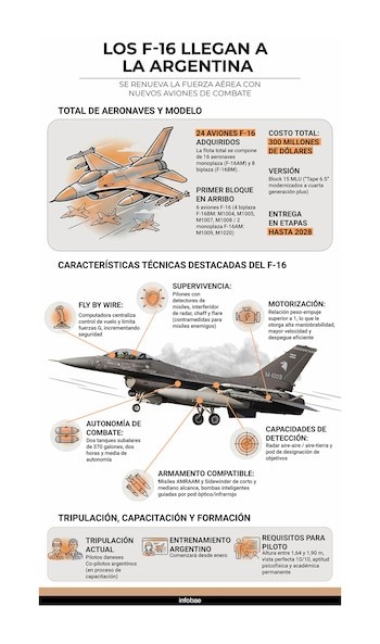 Esta demostración aérea marcará simbólicamente el arribo de una capacidad de defensa que no se renovaba desde hace décadas. La adquisición, avalada por los Estados Unidos, comprende un total de veinticuatro unidades modernizadas, incluyendo dieciséis monoplazas y ocho biplazas para entrenamiento, que llegarán de manera progresiva hasta completarse en 2028. El paquete incorpora además armamento, simuladores de vuelo, motores de repuesto, cascos de última generación y equipamiento de apoyo logístico.